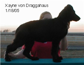 We have started showing Xayne in UKC Conformation, and she is doing pretty good. She has very nice structure and if we can get her past not liking the floors, she doesn't feel she should run in the house. lol. But we are working on it and hopefully she will do well at the show in Hutto next weekend. (7/21/07)