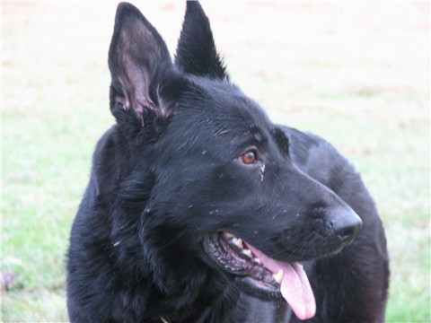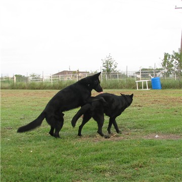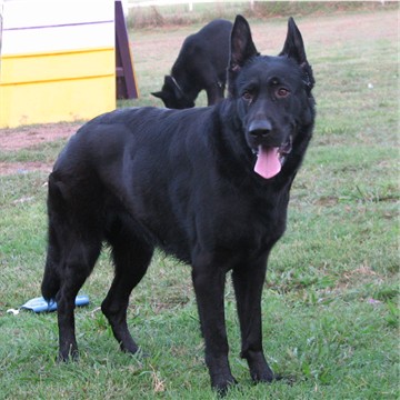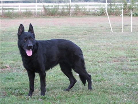 Well our girl is ready to be bred. We are breeding her to Xeppo, and expecting large, active, solid black puppies. We took pictures of her and Xeppo playing in the front this morning, she just loves him. She is a poser too..she will stand real still and look at you like ok I am ready take my picture. lol