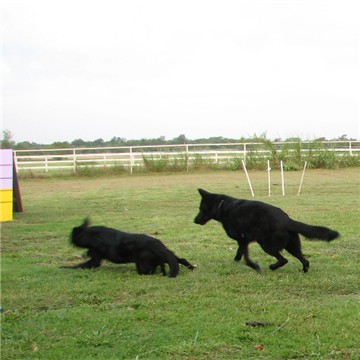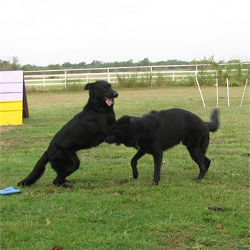 Xaye is one of the sweetest girls, she look scary but is a big baby. She has very high prey drive and we have to watch her around the sheep, but will be working on this with her. I would like to get some herding titles on her in 2008. She is an easy dog to have around, and really does get along with all the other dogs. Her most favoriet game, is keep away she loves to grab a toy and show it to the other dogs and then have them chase her. It is so funny.