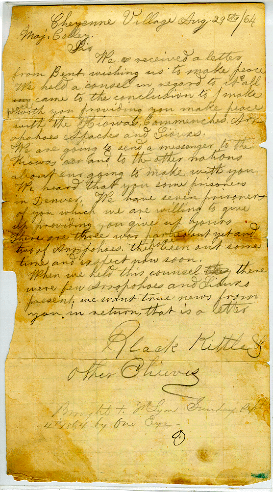 Jefe Black Kettle había pedido una tregua por escrito y se había