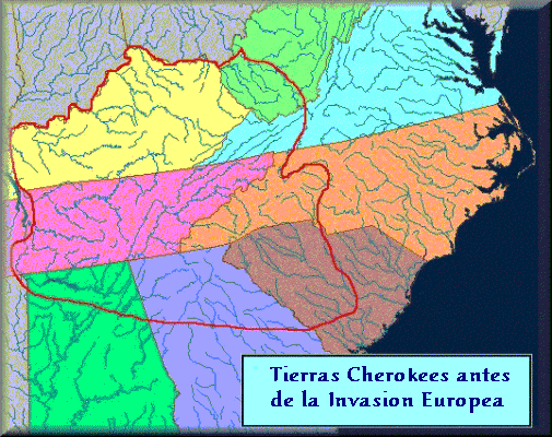 Tierras Cherokee antes de la invasion europea Puede hacer click sobre la imagen para ver los detalles |
