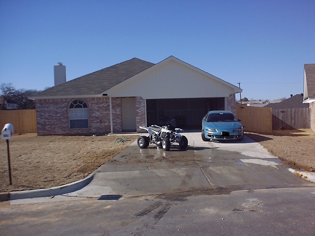 Our new house with my (crappy) Dodge Avenger (for sale, hint hint) and just finished cleaning the Banshee.