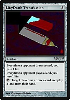 Me and my friends are big fans of the card game "Magic: The Gathering" and I love creating new ideas for the set. So now I can display my ideas with my creations ideas right here on the website. And if you have any ideas I would love to make the card for you and I will also give you credit. So if you have a idea for a special magic card then text me on the left or email me with the subject "WOP: Magic Card Idea".