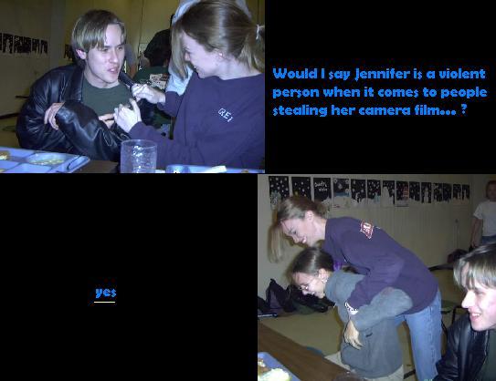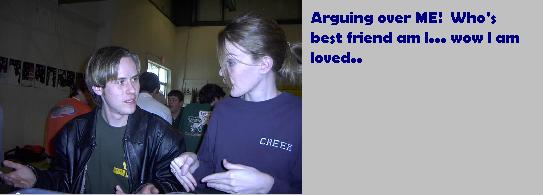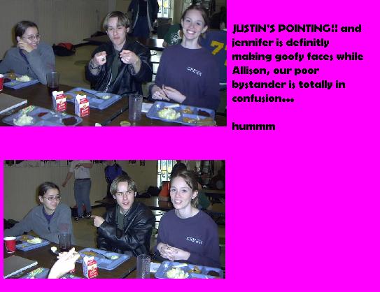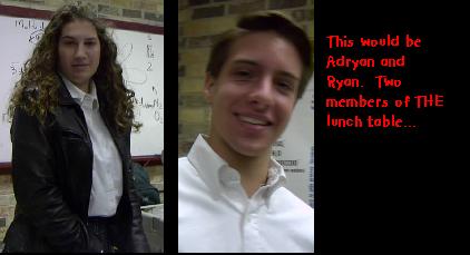 This is last years TABLE. 2000/2001. There will be an update soon on my new page of the current table and soon after the future table. The Table is not a cult dispite what anyone thinks. It is merely a group of seemingly misfits who sit together and has been that way for quite sometime. New members are added and some lost. Last year Benjamin, Gregory, Patrick, Matt, and several others left. Jennifer and I were added last year and this year Adryan and Justin (Justin is our "leader") allowed Allison, Ryan, Margarate, William, and Mark to join. Here is one day of random pictures that I took. This doesn't include everyone but I hope to post some of the other's soon.