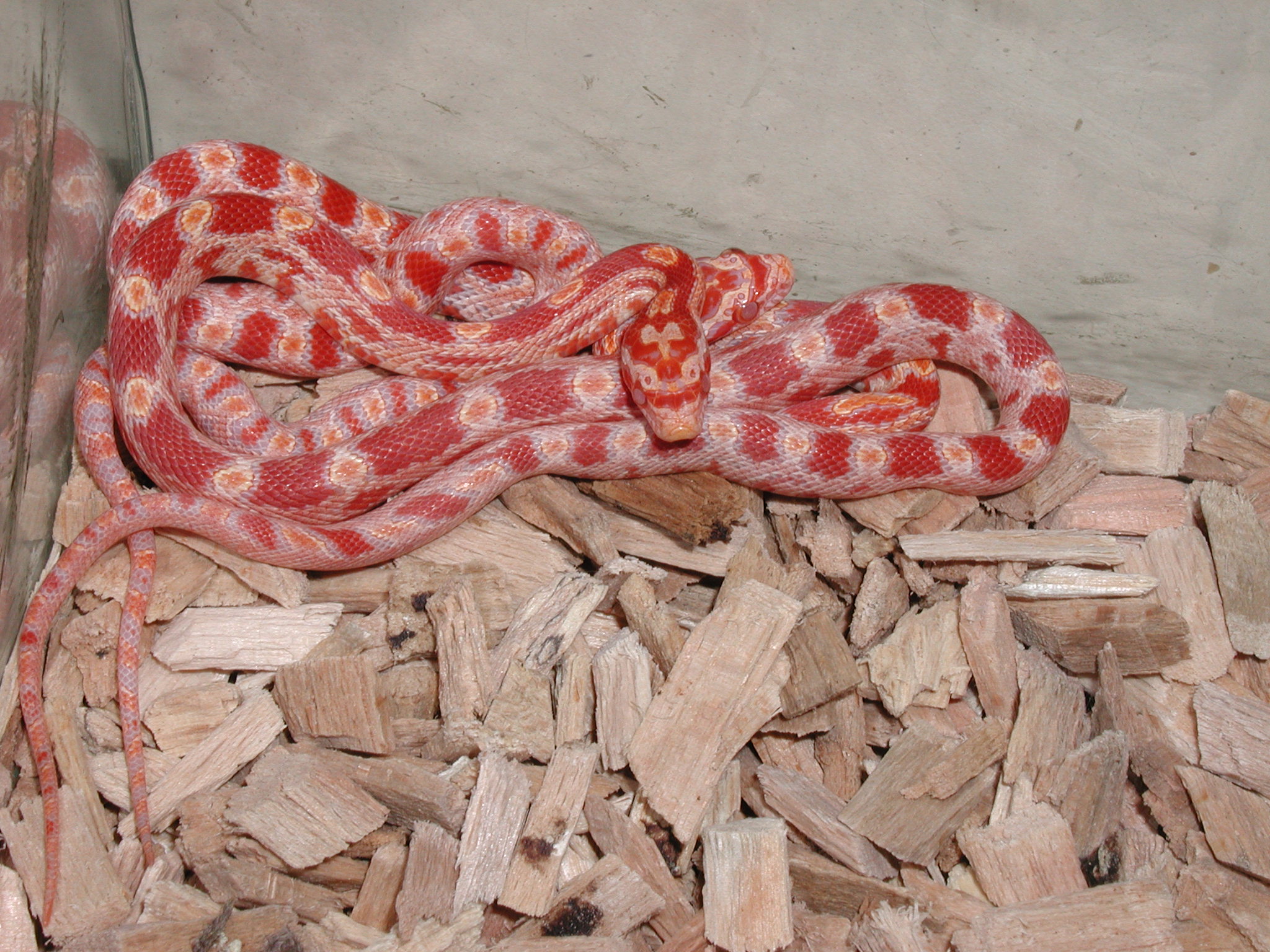mes 2 elaphes guttata albinos rouge, cette phase s'appelle candy