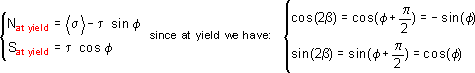 So, lets summarize, at yield (when equality holds) and in 2D, It can be shown that the Mohr-Coulomb condition (in Eq. 14) can be written as: