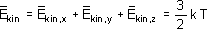 This set of equations suggests that a mono-atomic gas in equilibrium and following Maxwells assumptions has kinetic energy equally shared between the three directions of space, this is called the equipartition of energy in the 3-Dimensional space. We see the role of the Boltzmann constant k (= 1.3805x10-23 J/K) which converts kinetic energy (J) into temperature (degree K), it is simply a scale factor.