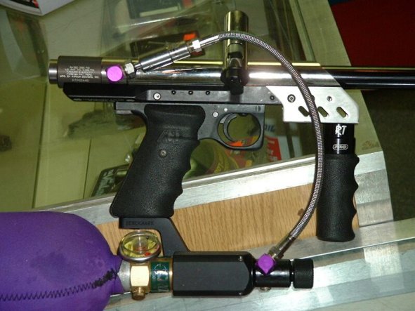 I played with my new Spyder until late 2000. After hundreds of dollars in upgrades, I traded it along with some cash for a gun that I had admired for many years, an Automag. I adored the mag since I heard the first ting of the mag fire. It was such a good design , that it is still virtually unchanged today. I swear by the Automag. It is the fastest cycling marker ever created, cycling almost twice as fast as the fastest Angel or Shocker. With a rate of fire greater than 26 rounds per second, it is unmatched.