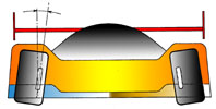 bocht de band vervormt richting positief camber.