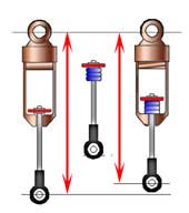 je zien dat niet de schokbreker korter wordt, maar dat