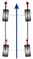 Dit is de afwijking die de wielen maken ten opzichte van de langs-as,