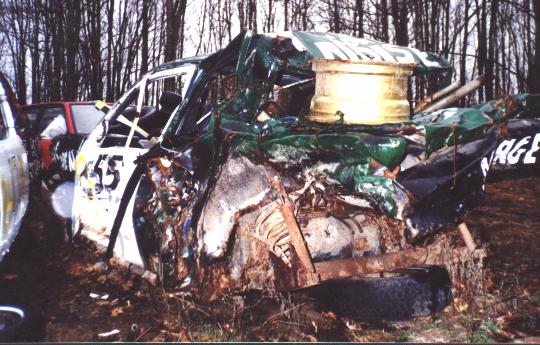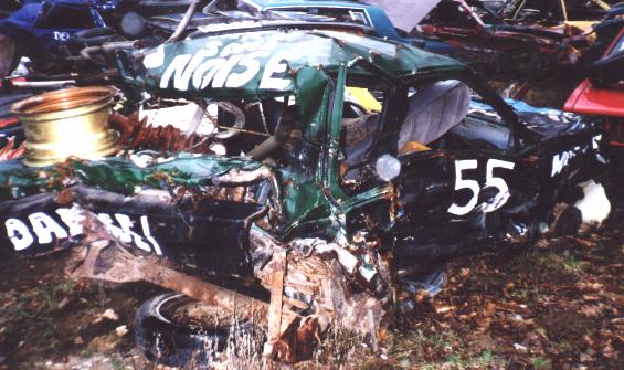 The used 86 Cavalier from the Winter derby ran AMAZING! What an amazing 2.0L. I went out hitting like crazy in my heat and was still running when it came down to me and my friend Kevin Turcotte in a Chev. Celeb. My cavalier was so destroyed I took 2nd and advanced to the feature. In the feature I could only use my front end because the back of my car was at the back of my seat. The car folded so badly I hardly had any room to drive. Ran great though! Even with no coolant right from the beginning. Finally I was told to shut my car off when somebody got hurt. Little did I know my front bumper broke my starter in half. Oh well got 4th place and HAD A BLAST!