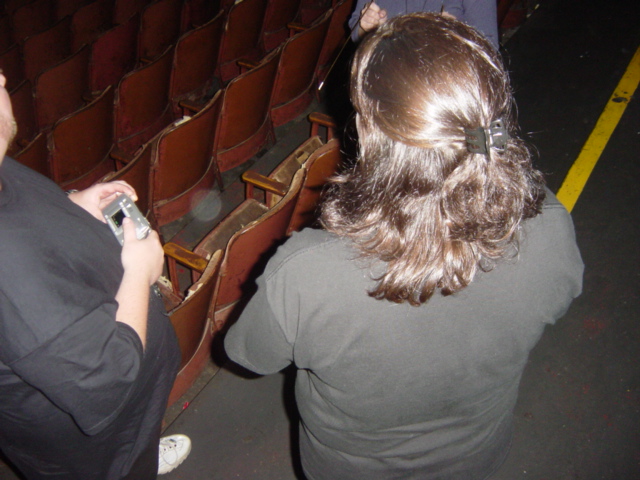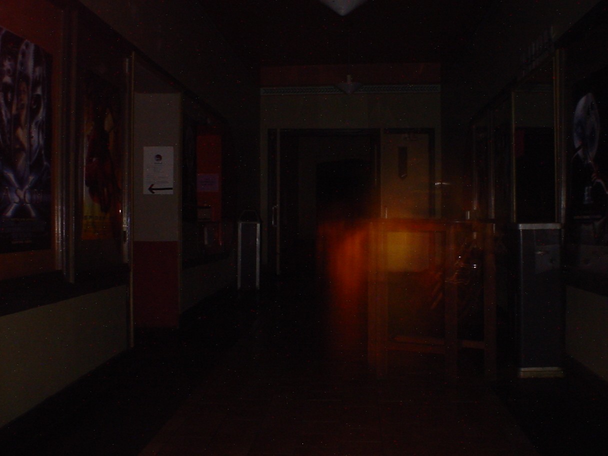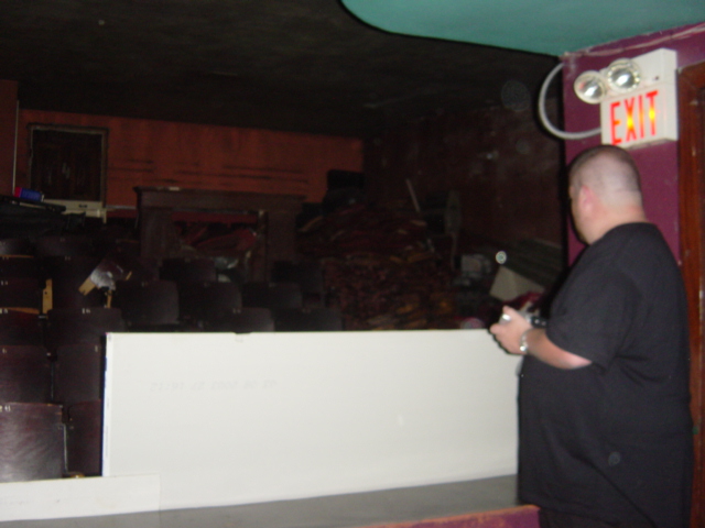 CKPRS member Roger, taking EMF readings in the balcony. Note:"Orb" in photo is non-paranormal.