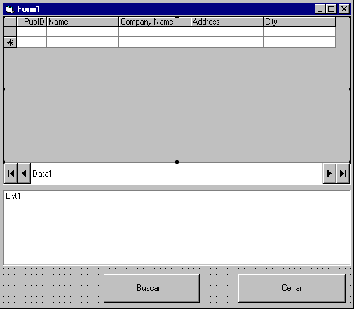 A partir de la base de datos biblio.mdb que viene con VB vamos a mostrar esta vez la tabla de editoriales (publishers) en un control DBgrid como hicimos con los autores en el capítulo anterior.