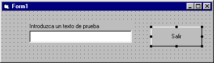 Pero sólo con introducir un control de este tipo con el texto salir que se introduce a traves de la propiedad caption no basta. Habrá que asociarle un código que nos permita salir de la aplicación en el evento adecuado. Y el evento por excelencia de este control es click. Así pues accederemos al código del control y la sentencia nos permitirá salir de la aplicación es End, simplemente tecleamos esa palabra en el evento click y comprobar que realmente finalizaremos nuestra aplicación al pulsar sobre dicho botón.