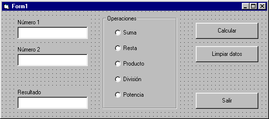 Para practicar con los controles que hemos visto vamos a realizar una pequeña aplicación que consistirá en realizar con 2 números que introduzcamos, una operación que seleccionemos y mostrar el resultado.