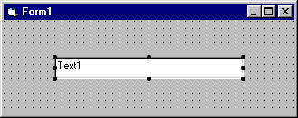 Observamos que al situar el control en el formulario aparece por defecto el texto Text1. Para que no aparezca ese texto al ejecutar la aplicación, debemos cambiar la propiedad Text pulsando F4 y colocar el texto que queramos o no colocar nada.