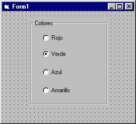 Para que los controles Optionbutton queden englobados dentro de un control Frame, primero tendremos que colocar el control Frame en el formulario con el tamaño adecuado y despues ir colocando los controles Optionbutton dentro del Frame.