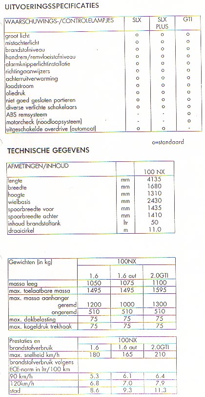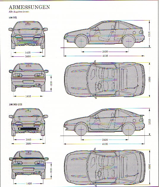 Hier naast kunnen jullie de afmetingen van de Nissan 100NX vinden.