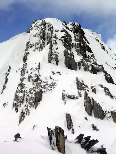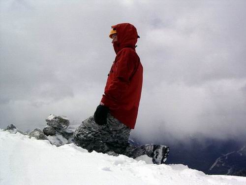 Note for May 30, 04: - Did a solo trip up Mount Cory today (May 30, 2004). 3:50 min ascent. 2:55 min descent. One of my top 5 favorite scrambles. It would be hard to get lost on this one, just follow the ridge from the highway to the summit. It took me 2 hours to get above treeline and into the plateau. Very windy day. The clouds were high at this point and I could see the first summit. Soon after treeline is where the snow and verglas started. After moving over a few of the moderate parts of the ridge, and finally topping out on what I thought was the summit, I realized that I was at the first of two summits. Nothing is worse than thinking your on the summit, then realizing your not quite there yet. The hike over to the second summit was not bad at all. The ridge was dressed with huge cornices so I traversed off the ridge a few times to thwart them. First ascent of 2004. The weather turned ugly so I ran back over to the first summit then descended the south ridge. 300Meters down, the clouds parted and the sun came out for a bit. Back at the car 2:55 mins from the summit.