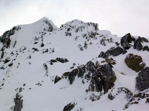 The last section of the ridge before the south summit at top left.