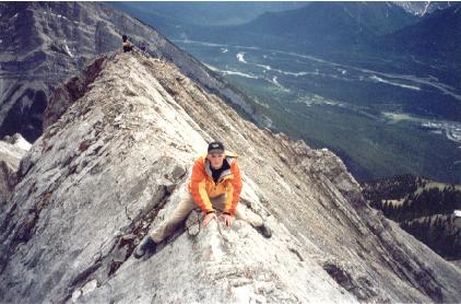 June 2, 01- Ride Em' Cowboy! This part of the ridge was so narrow that I had to straddle the ridge and shuffle along. It was fairly uncomfortable, but safer than walking along it. Nothing like a big shot of adrenaline!