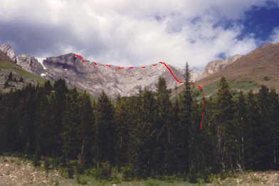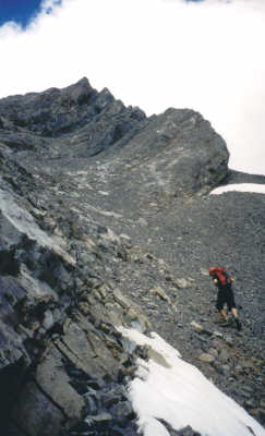 July 19, 02- This is the ridge leading to the summit. We stayed below the ridge traversing on scree.