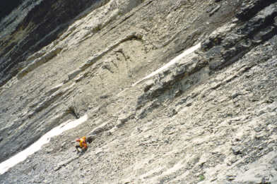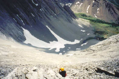 July 19, 02- Here is Colin descending slab and scree on the descent.