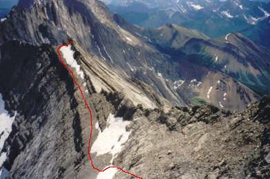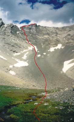 July 19, 02- From the summit we descended this face. It is steep from the ridge to the valley and the descent was very quick. I would recommend coming down this route.