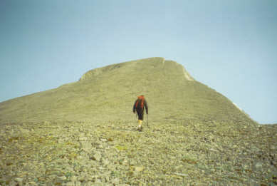 July 17, 02- Warrior Mtn's ridge is very wide. Colin slogging up to the summit.