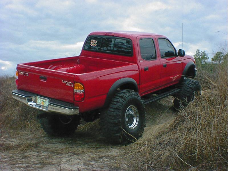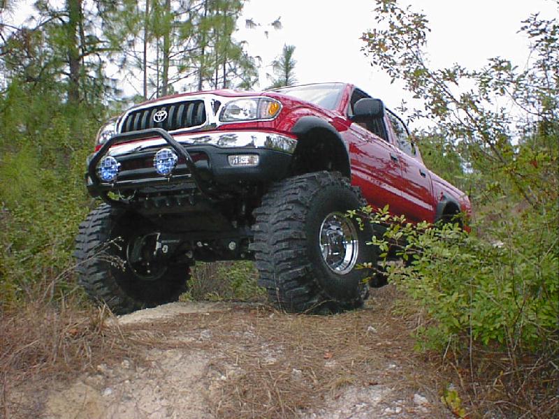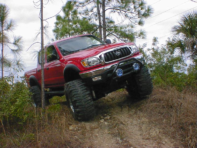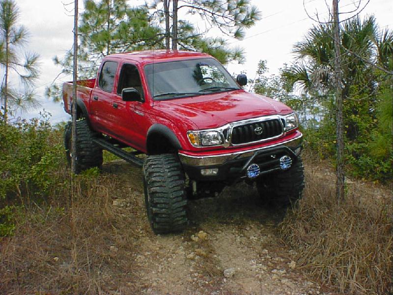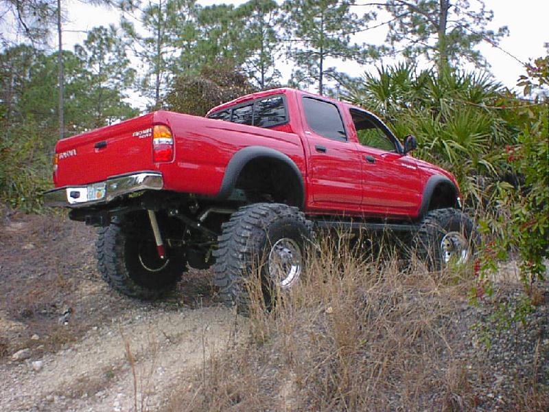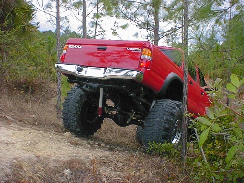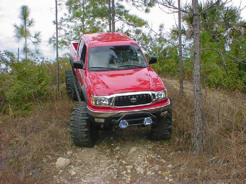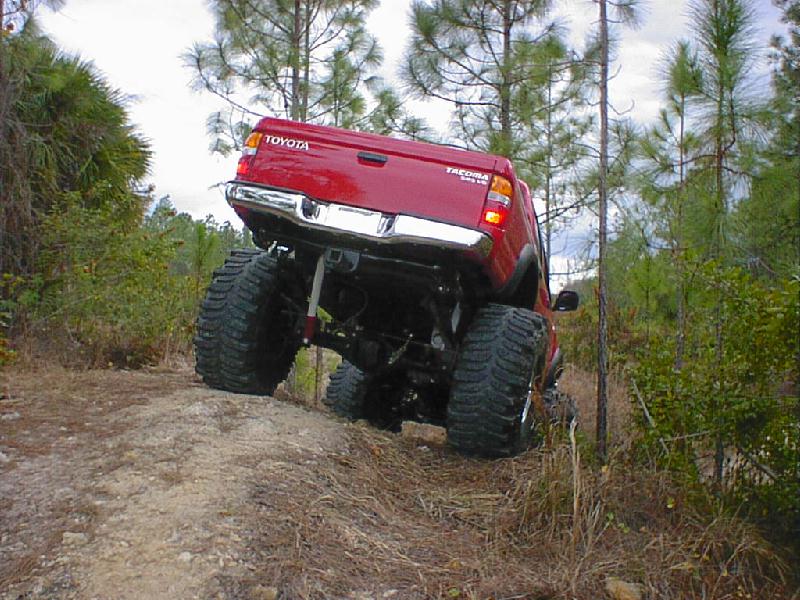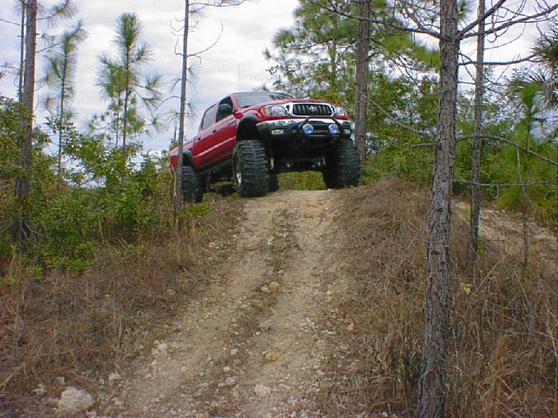 Here's some pics from (1-17-01) The pics aren't the best since I just put the sway bar back on and it definetly did not help my articulation. The rear seems to be working pretty good but I'm still planning to install a trac bar and duel shocks. This is about the largest hill I have been able to find any were in southern Florida. It wasn't bad but was a little small since it's for quads. The first two pics in this row are of me trying to see what type of articulation I have. Like I said before the rear is almost set but the front would do a lot better without the sway bar. I need to go back and try it again without it. The other two are of my father-in-law and me in a car show Saturday. It was local and he was going so I figured I would give it a shot. I did win my class and got a plaque but There were only a couple in my class. Most of them were street rods. The yellow one is my father-in-laws 31 Ford vickie. All steel body and fenders, he has spent the last 4 years restoring it and now get to go crusin and have some fun with it. The last pic is of my bostin terrior that I posted just for the hell of it and to say that she can kick "rippers" bostin's but! (Just picking on ya ripper)
