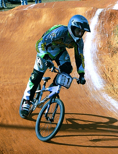 Another J & R Bicycle's rider was riding with style - Joey Mims, the newest addition to the 40-44 Cruiser Class. Mims perfected his motos both days and won the main on Saturday. Sunday, he was not as fortunate. Moto wins allowed him to cap for the State Series, but for whatever reason or another, Mims was denied a spot in the main. Sunday's win went to Edward Chadler.