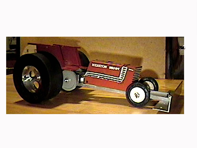 I DECIDED THAT I WANTED TO BE AS LIGHT AS POSSIBLE. THIS PRESENTS SEVERAL CHALLENGES IN THE PLANNING. THIN-WALL C-CHANNEL IS BEING USED, AS OPPOSSED TO THE SOMEWHAT STANDARD BOX TUBING. THE MATERIAL IS 1 5/8 INCH WIDE, AND 7/8 INCH DEEP. THE BOTTOM IS 1/8 THICK AND THE SIDES ARE 3/32 INCH. NEXT , I DECIDED ON A VERY LIGHT HOOD ASSEMBLY. I AM USING A HESTON HOOD, THAT IS PLASTIC. I WILL BE USING BEARINGS INSTEAD OF BUSHINGS. BUSHINGS ARE LIGHTER, BUT I DESIRE THE TRUENESS AND LOW FRICTION OF BALL BEARINGS. ALL MY SHAFTS ARE TO BE ALUMINUM, INSTEAD OF STEEL. THIS INCLUDES THE REAR AXLE. THE CLASS DOESN'T PULL HEAVY WEIGHT, SO THERE WILL BE NO PROBLEM WITH TEARING THINGS UP. I WILL ALSO BE USING PLASTIC GEARS, EXCEPT FOR THE FINAL GEAR, TO LOSE MORE WEIGHT. NYLON GEARS ALSO ARE SELF LUBRICATING AND LESS SUSSEPTIBLE TO WEAR.