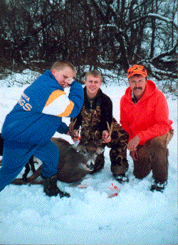 This is the deer i shot last year. From left to right in the picture it is my brother Seth, Me, and my Dad