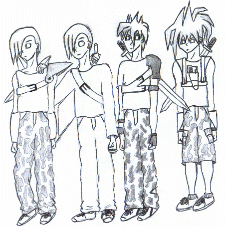 Well, if you really wanna see what the characters from the First Earth look like, then you've come to the right place. I made life simple and did a group drawing. I'll explian the four going left to right. Only, I won't explain Tony because I give you an explaination about him in the SE character decription. So, uh, enjoy the madness!