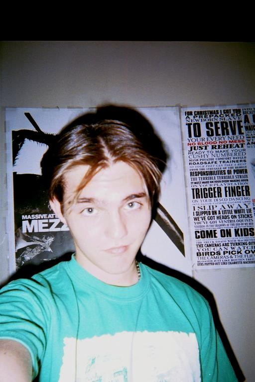 Self Portrait use Photos More awake, still tired, same green t-shirt Apartment (not pre-cleaned to make it look like I'm organized) My painting (and pile shit on) table Really Random Bubbles' and Hello Kitty's love nest