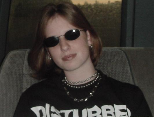 This is No in her van wearing her Disturbed shirt and shades. I think she's hott in this pic.