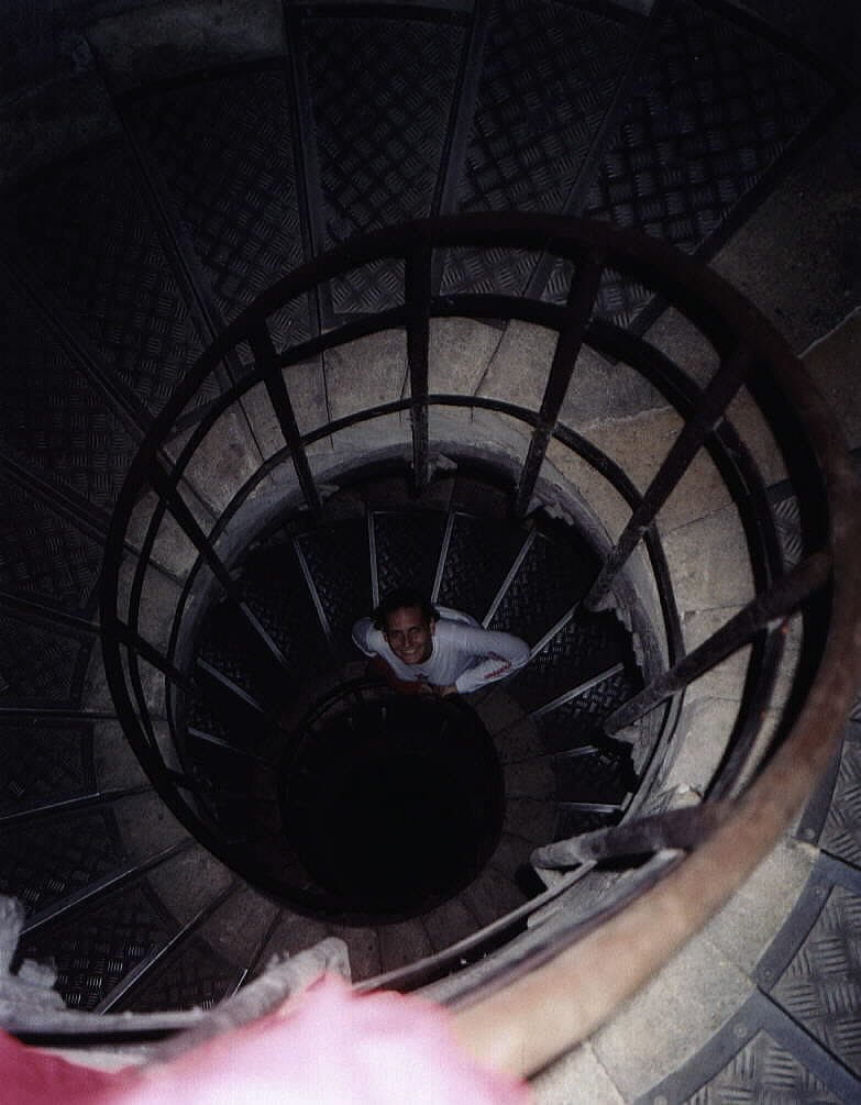 The stairs in the Arc de Triomphe. There was hundreds of stairs you had to go up to get to the top, and it was a spiral stair case. Can you say dizzy? It had rained earlier too and much of Paris is marble, i slid around so much on the ground in my flip flops, my dad had to hold me up.
