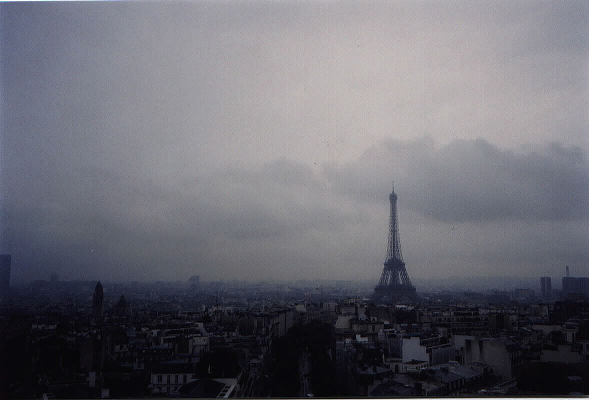 the view from the top of the Arc de Triomphe. I love this picture cause you can tell how much bigger the eiffel tower is then everything else.