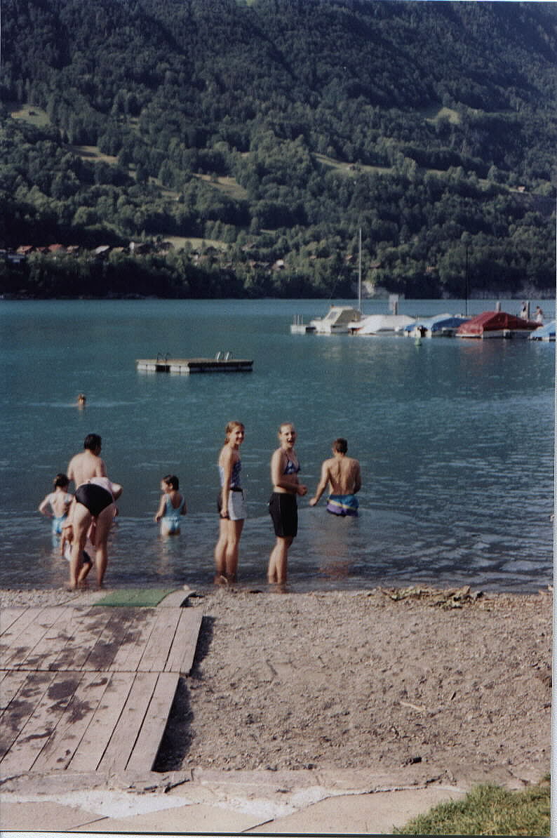 We went swimming in Interlaken in a glacier lake! It was absolutly freezing! As you can kind of tell from the look on my face.