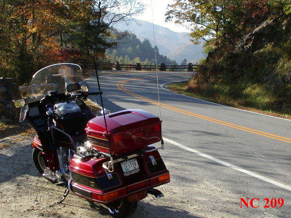 When plans for a weekend ride to a couple of MTF Ride-to-Eat functions had to be cancelled, I decided to make a one day run through the mountains. I took the super slab to Newport, TN, and then headed back to NC via US 25. From there, I went south on NC 209 into Waynesville, NC, West on US 74 to US 28, and from US 28 I took NC 143 accross the mountains into Robbinsville, NC. From there I took the Cherohala Skyway over to Telico Plains, TN and from there I went south on TN 68 into Georgia, then south and east on GA 68 to Suches. From Suches, I "ran with the wolf" (over Wolf Pen Gap Road) on GA 180 and up to Brasstown Bald, the highest point in Georgia.