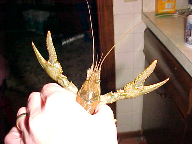 In most pictures you will see how I have learned to hold a Crayfish properly, without getting pinched.