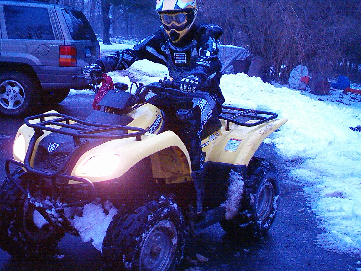 Ozark 250 Man's 2002 Suzuki 250 Quadrunner- This is my quad, a 250 Quadrunner all stock and brand new. It kills Blasters in trails and has decent top end speed. Again, it is all stock except for a PANORAM speedometer/computer, and this atv is a great deal for any ATV enthusiast. It is my first machine (Quad, that is) although I do own a 206cc Gokart and a really fast Goped Scooter clocked at 37+ MPH