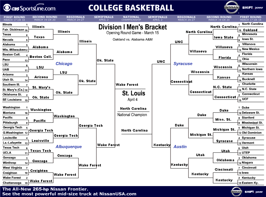 • NCAA Prediction • March Mayhem Teams • Printable Bracket •