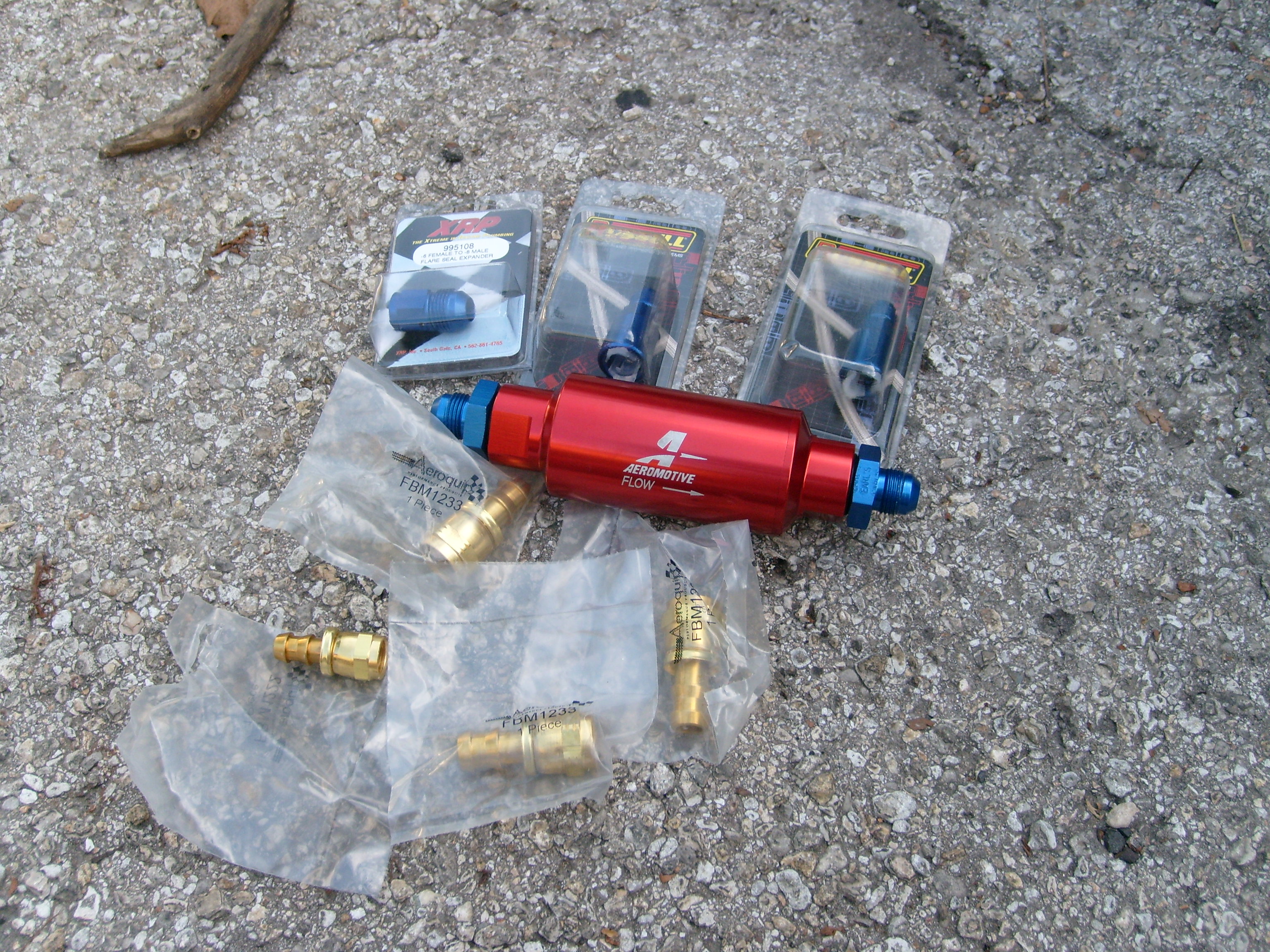 and outlet fittings (blue), http://store.summitracing.com/partdetail.asp?autofilter=1&part=AEI%2D12304&N=700+115&autoview=sku Russell Fittings for pump inlet/outlet. Fits 87-98 Ford Mustang. ($30 new) 10 ft. 1/2" Blue Push-Lok Tubing; 10 ft. 3/8" Blue Push-Lok Tubing. - Both uncut. ($4/ft. new; ~$80 total spent) These are all NEW parts. They have been assembled, but fuel was never ran through them. I opted to go a different route for my fuel system. Everything ran about $350 new, make offer. Prefer not to separate.