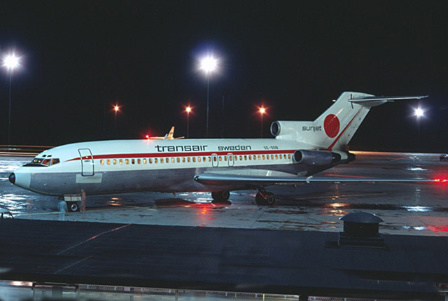 The jet-age started in 1967 when Transair took delivery of one Boeing 727-100 aircraft. A total amount of three aircraft where ordered. The inauguration fligth to Las Palmas in the "Midnight Sun" SE-DDA took-off from Bromma airport on the 23rd of November 1967.