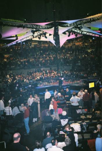For the first part of the concert I sat in Section A. Bill Gaither, Ben Speer, The Isaacs, and others took the stage. Jake Hess was home after a recent illness. Bill Gaither said we just couldn’t afford to lose anymore of the great voices. And then he introduced Vestal Goodman. She walked slowly onto the stage and was met with the warmth of a standing ovation. She launched into my personal favorite, “God Walks The Dark Hills.” It was at that moment I knew I had not traveled this far not to meet her. The first half ended with the rich notes of the Gaither Vocal Band.