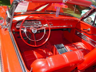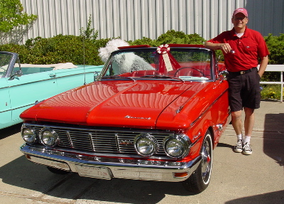 This is Drew's pristine 1963 Comet Convertible S22. He even has the matching larger than life stuffed fluffy dog to ride shotgun - the dog was featured in the 1960's Comet ad series but some of us think Drew uses the dog to qualify for a second passenger to ride in the car pool lanes... The car is immaculate and is completely stock with 260 V8 and even matching flashlight and cooler in the trunk. To return to the previous page, click the back button on your browser.