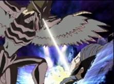 As the battle between Duskmon & Beowolfmon raged on, Patamon was doing his best to lead the gang to Koji. But Cherubimon trapped them in this spikey dome thing! Then Cherubimon took advantage of Koichi's amnesia, and gave Duskmon his Beast Spirit. When Duskmon Beast Spirit Evolved to Velgemon, he forgot what little he still knew, and tried to destroy Koji! Thank goodness Ophanimon intervened in time to stop him. Now Koichi remembers that Koji is his brother, but both of them are still clueless! Boy, what a mess.