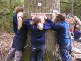 Measure the length of string to get the circumference of the tree.